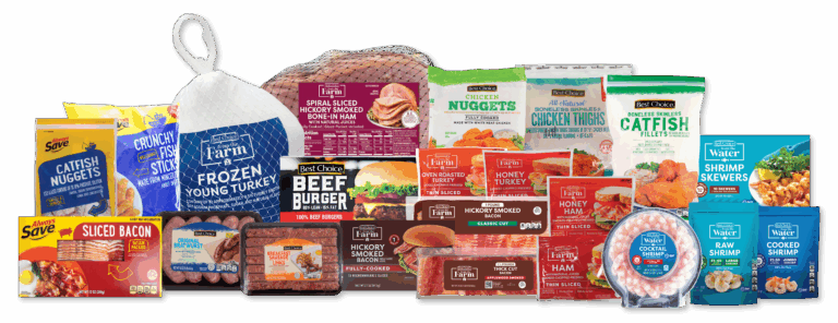 AWG Brands delivers more than 60 meat and seafood product offerings in Always Save® and Best Choice®. The Always Save® brand offers competitively priced opening price points or value-added options like fish sticks, catfish nuggets, burger patties, and bacon. The Best Choice® brand carries an extensive assortment of meat and seafood options.
